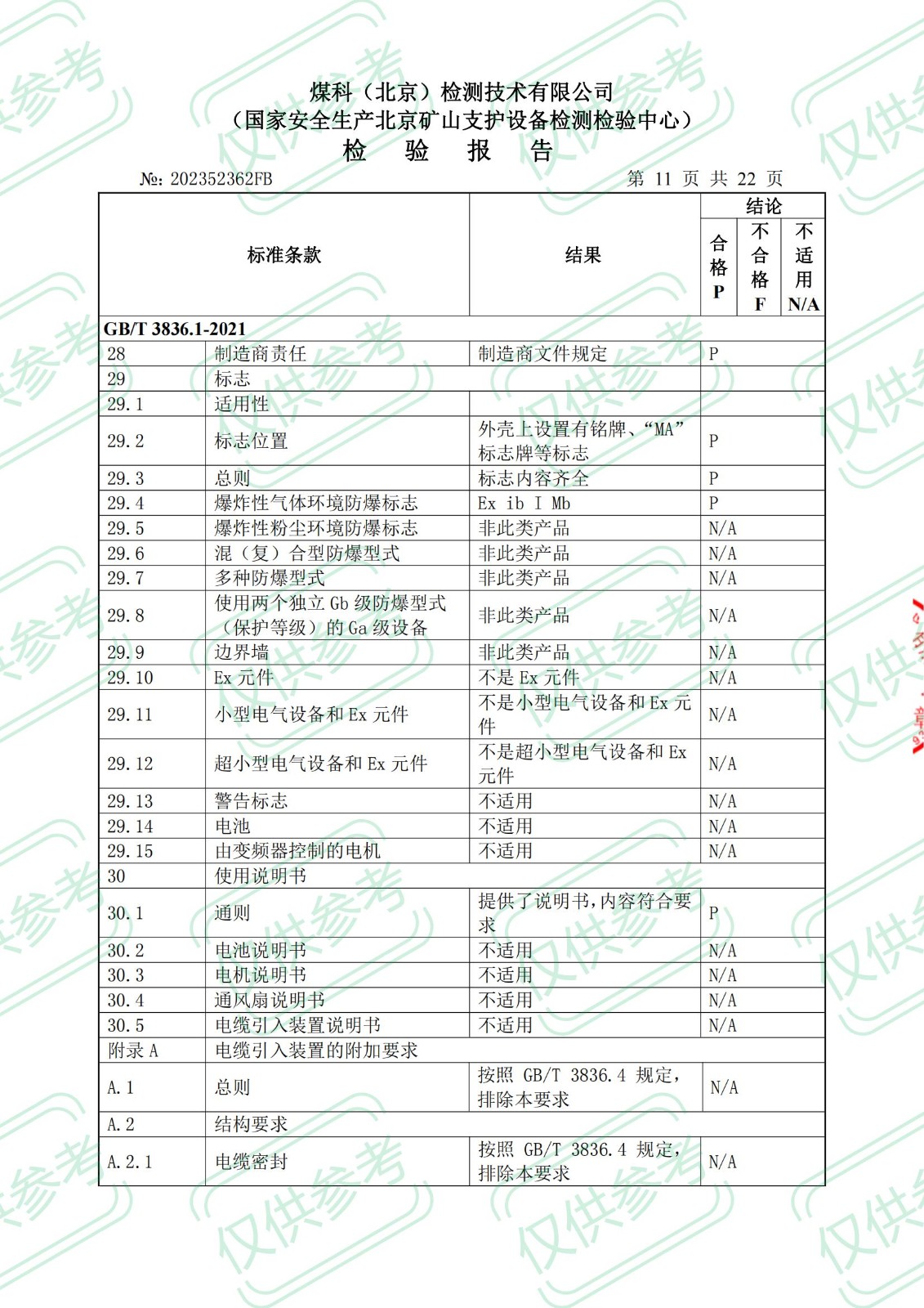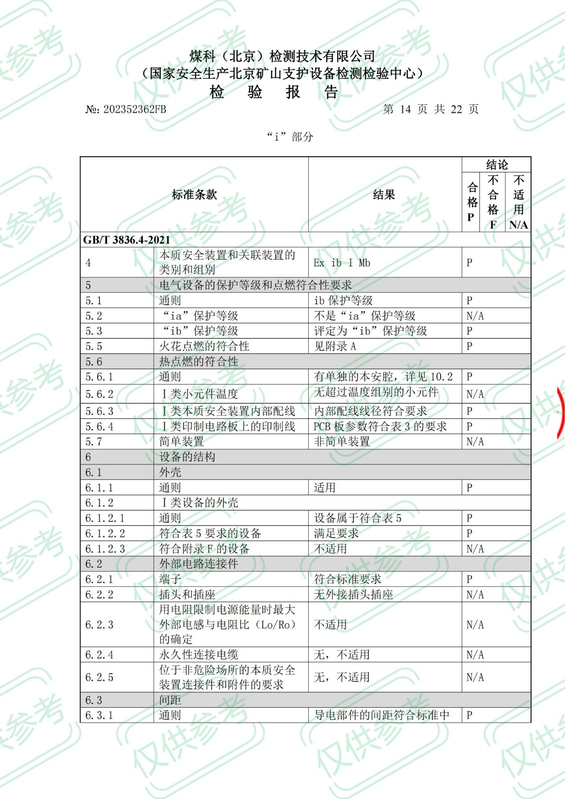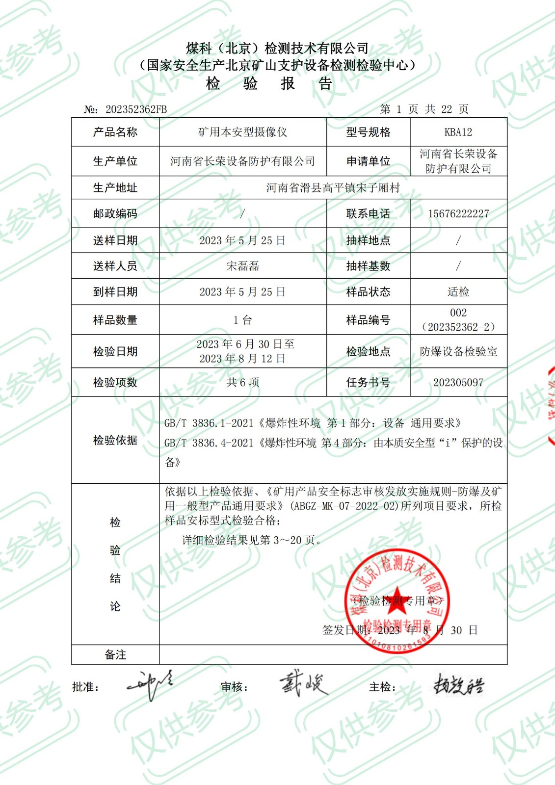 礦用本安型攝像儀檢 驗(yàn) 報(bào) 告ExibIMb