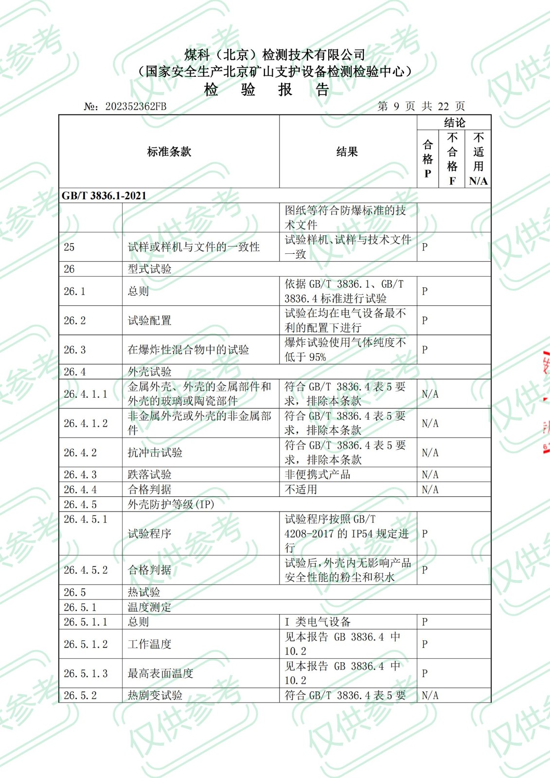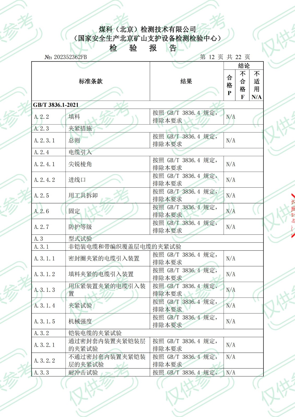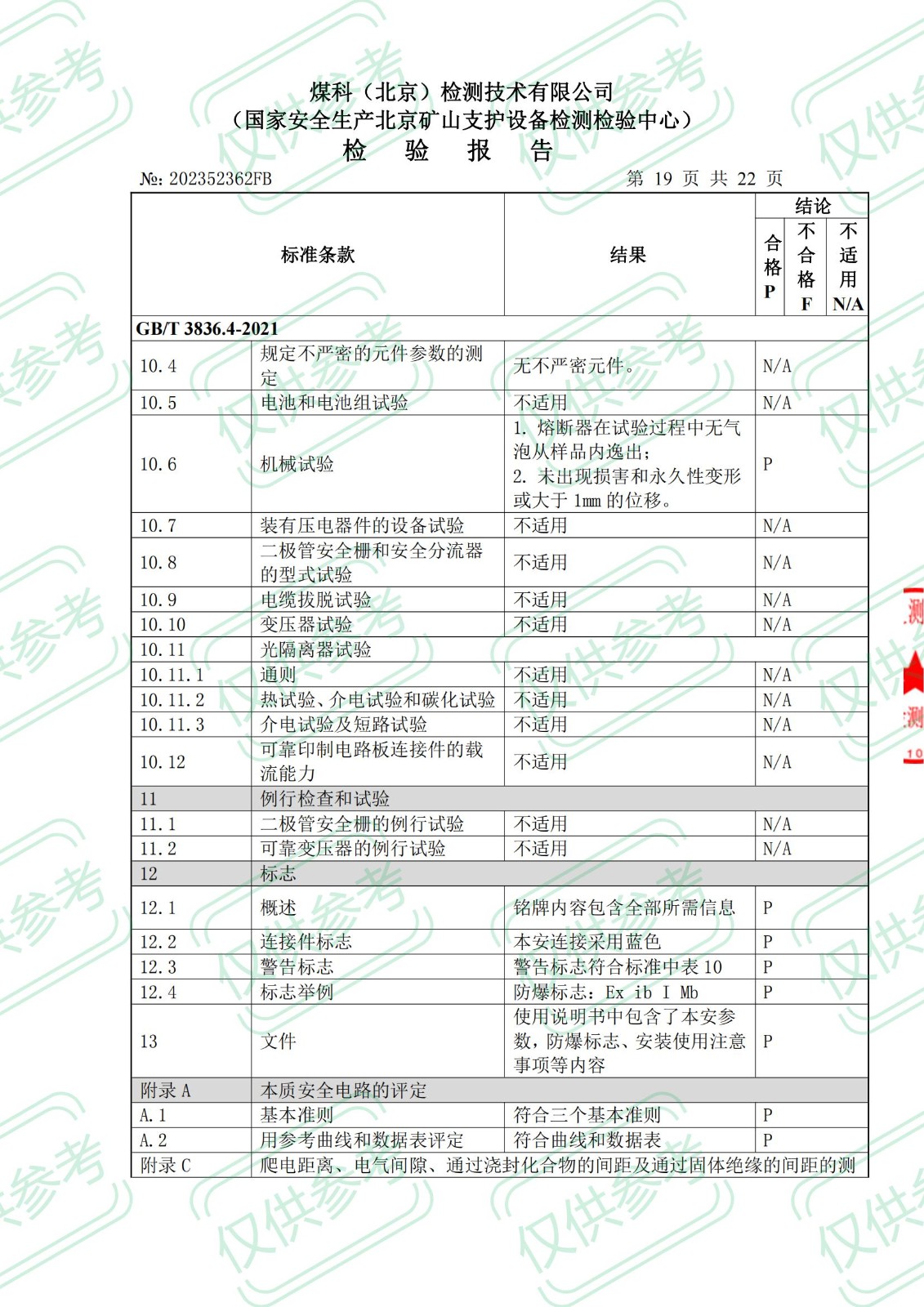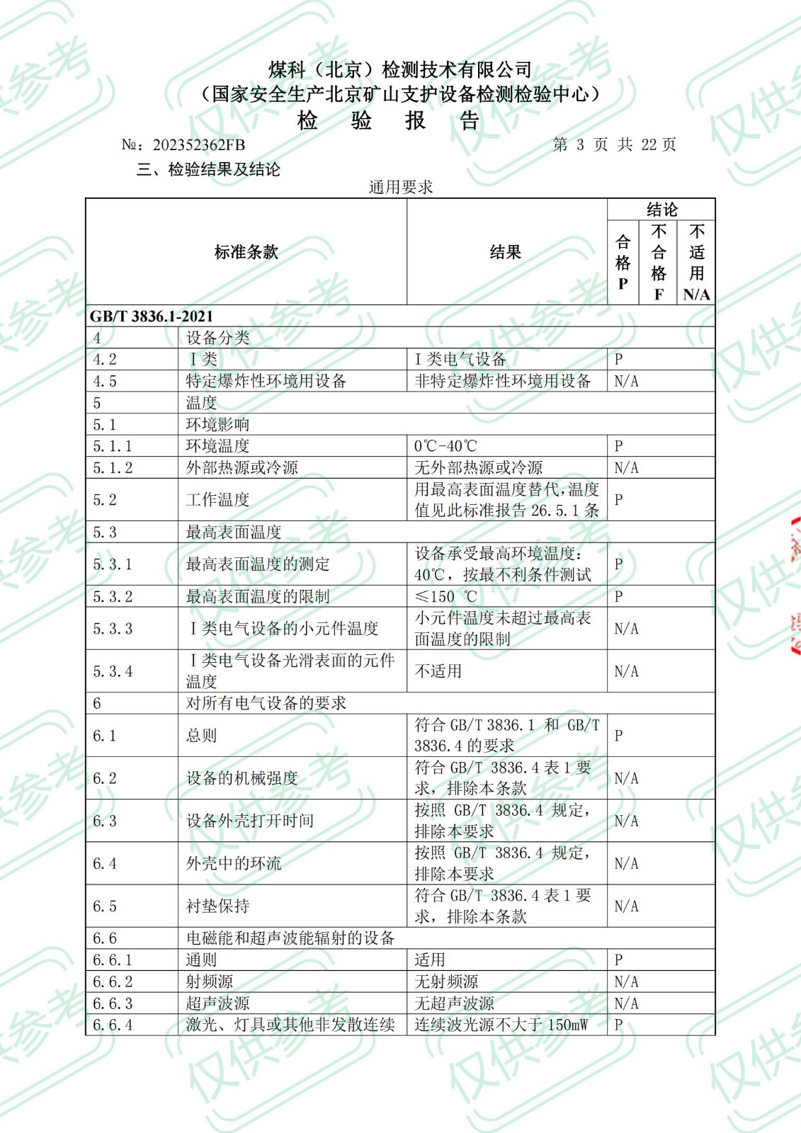 礦用本安型攝像儀檢 驗(yàn) 報(bào) 告ExibIMb