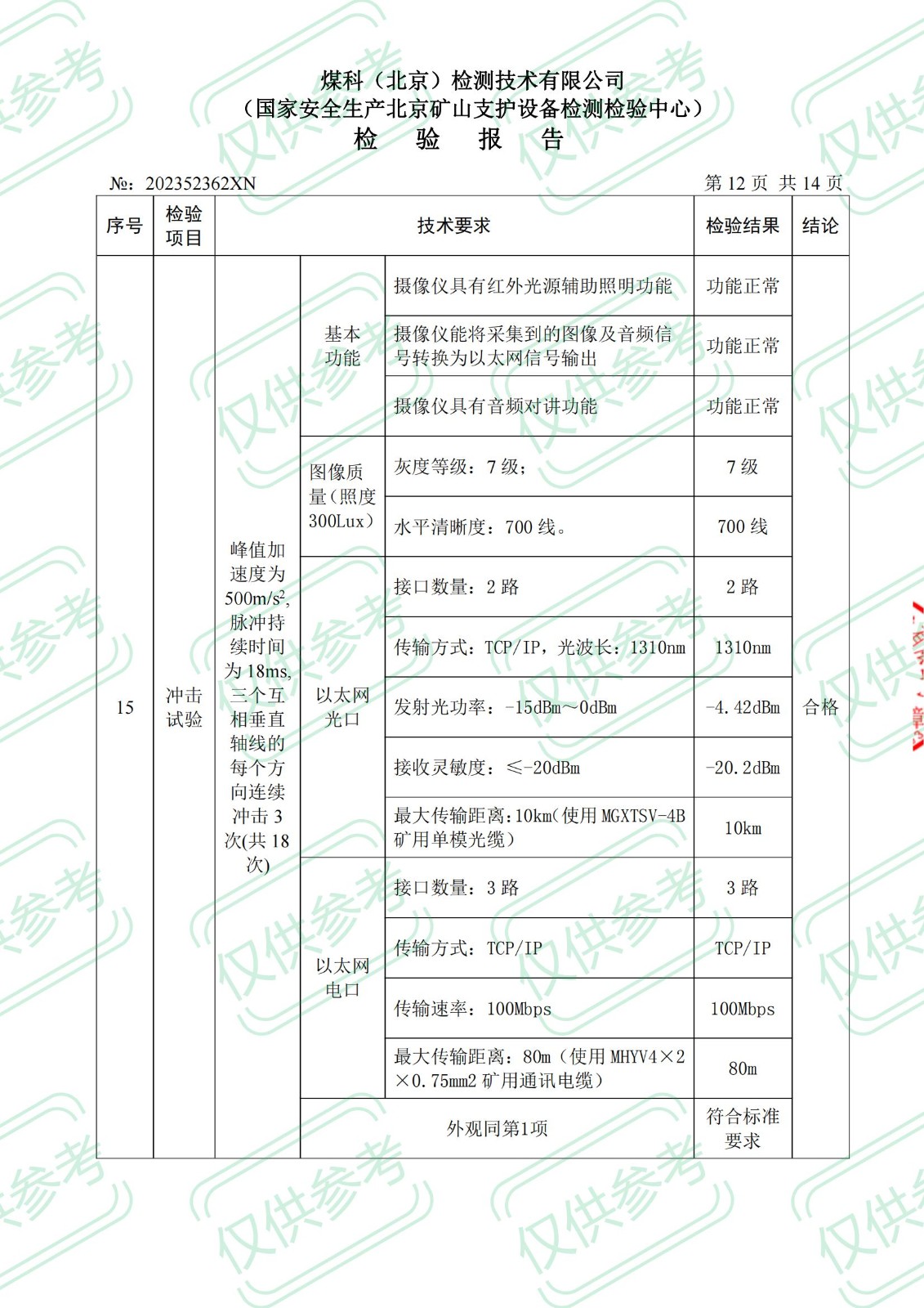 礦用本安型攝像儀檢 驗(yàn) 報(bào) 告KBA12